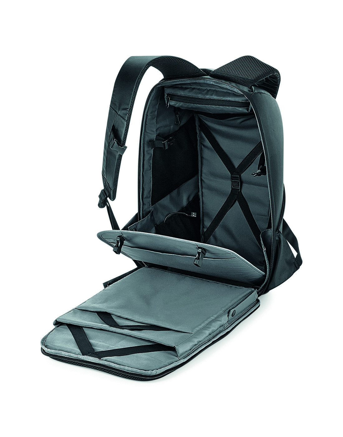 - Power bank pocket, integrated USB charging port and elasticated cable organiser
