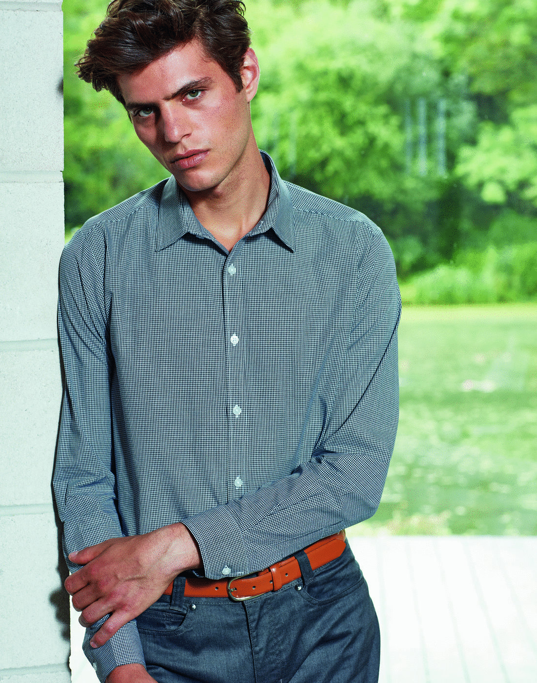 - Long sleeved classic fit microcheck shirt